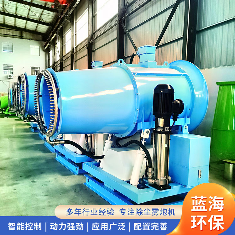 風送式除塵噴霧機是一種經過 殊設計,能夠實現將均勻連續混合物(水、空氣、添加劑)噴射超遠距離的 產品,成霧水滴尺寸均可控,噴射有指向性。