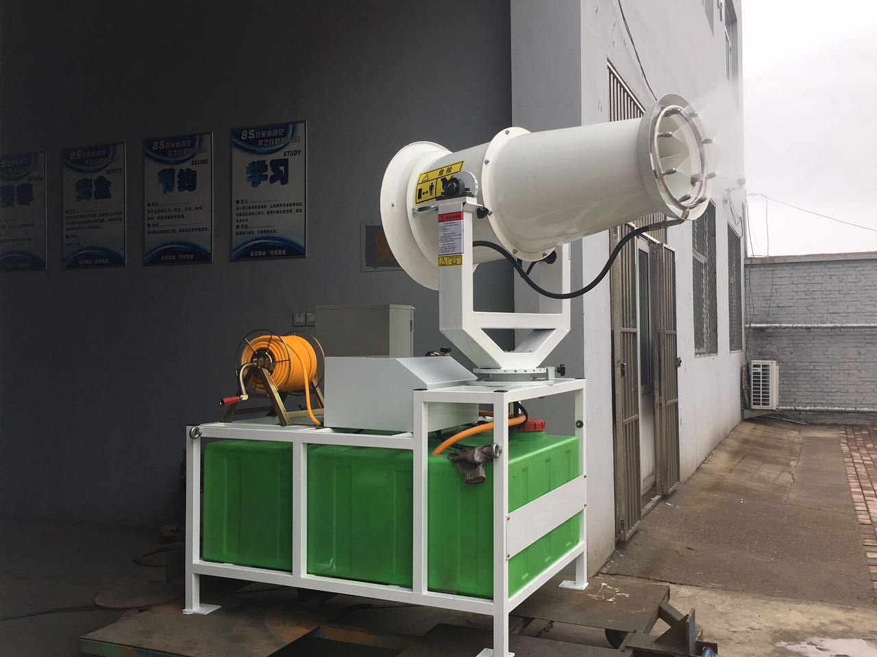 霧炮機的原理是灰塵可以通過與水結(jié)合而聚集和增加,使得細小的灰塵通過相等直徑的水滴的小胡作用,降低水面的張力,并使灰塵顆粒和水霧凝聚成一團,在重力額作用下,它落到了地面,當霧粒接近顆粒大小時,減塵效果 ,噴霧器通過高壓泵對水加壓,一定壓力的高壓水通過高壓霧化噴嘴產(chǎn)生直徑接近塵粒的水霧,通過大功率風扇將水霧送到除塵區(qū)域,制成水霧和霧氣,灰塵顆粒迅速附和凝結(jié),在自身重力下沉降,達到降塵的目的,還具有加濕和冷卻功能。