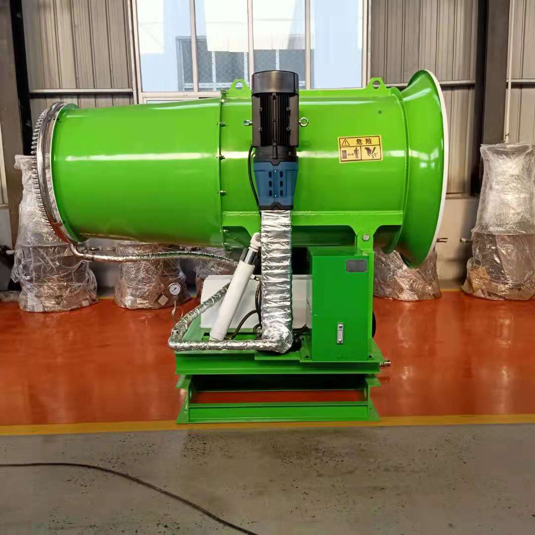 除塵噴霧機(jī)是根據(jù)風(fēng)送原理,先使用進(jìn)口高壓泵、微細(xì)霧化噴嘴將水霧化,再利用風(fēng)機(jī)風(fēng)量和風(fēng)壓將霧化后的水霧送到較遠(yuǎn)距離,使得水霧到達(dá)較遠(yuǎn)距離同時(shí)能夠覆蓋 大面積,水霧與粉塵凝結(jié)后降落,從而達(dá)到降塵目的。目前在許多露天堆料場、作業(yè)現(xiàn)場,作業(yè)粉塵和局部揚(yáng)塵是粉塵治理的難題。很多企業(yè)過去采用水噴淋的措施治理,但覆蓋面積小、用水量大等問題使水噴淋的治理效果極不理想。它可以根據(jù)用戶現(xiàn)場的實(shí)際污染狀況以及粉塵量的多少,量身設(shè)計(jì)遠(yuǎn)射程噴霧方案,以達(dá)到理想的粉塵治理效果。
